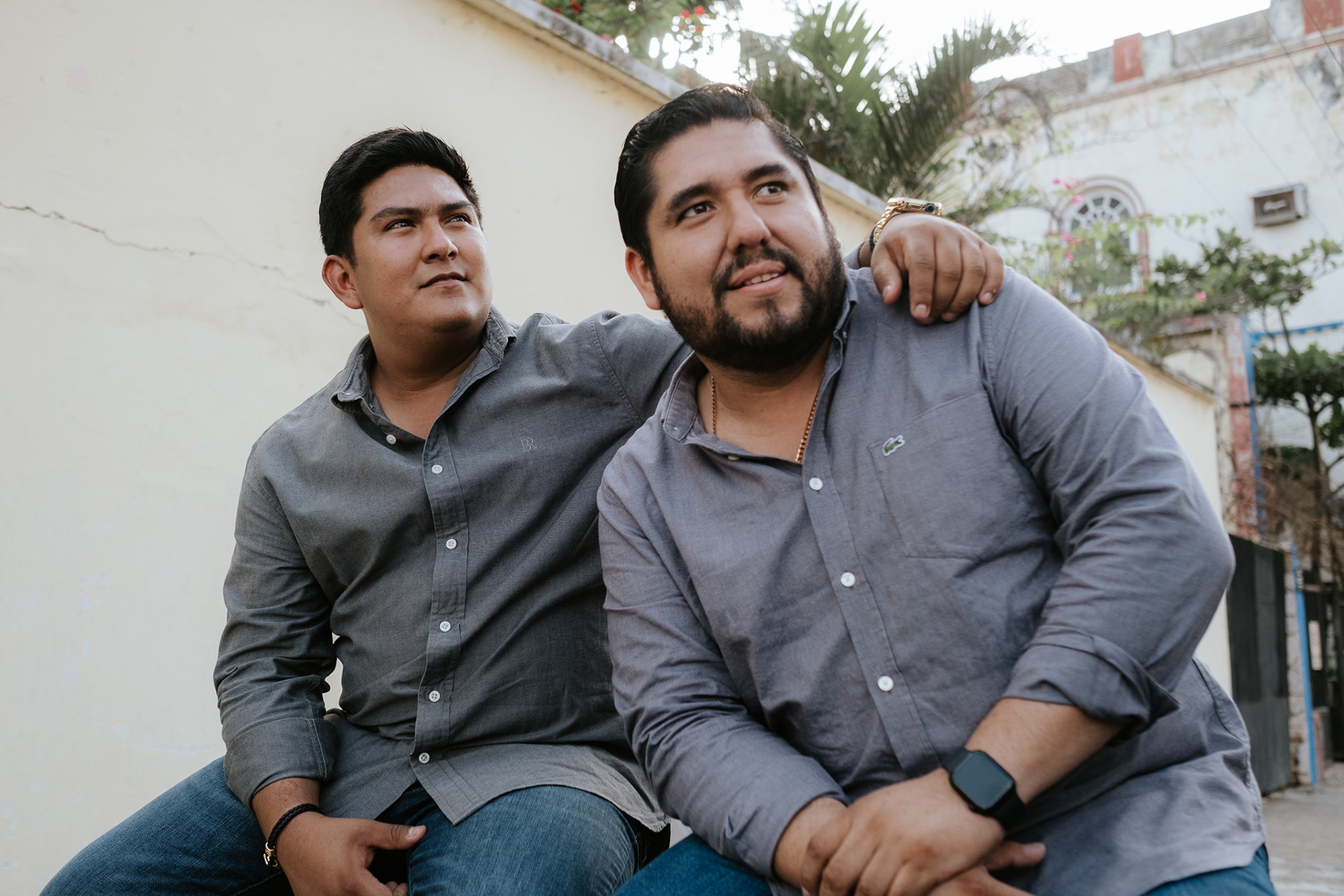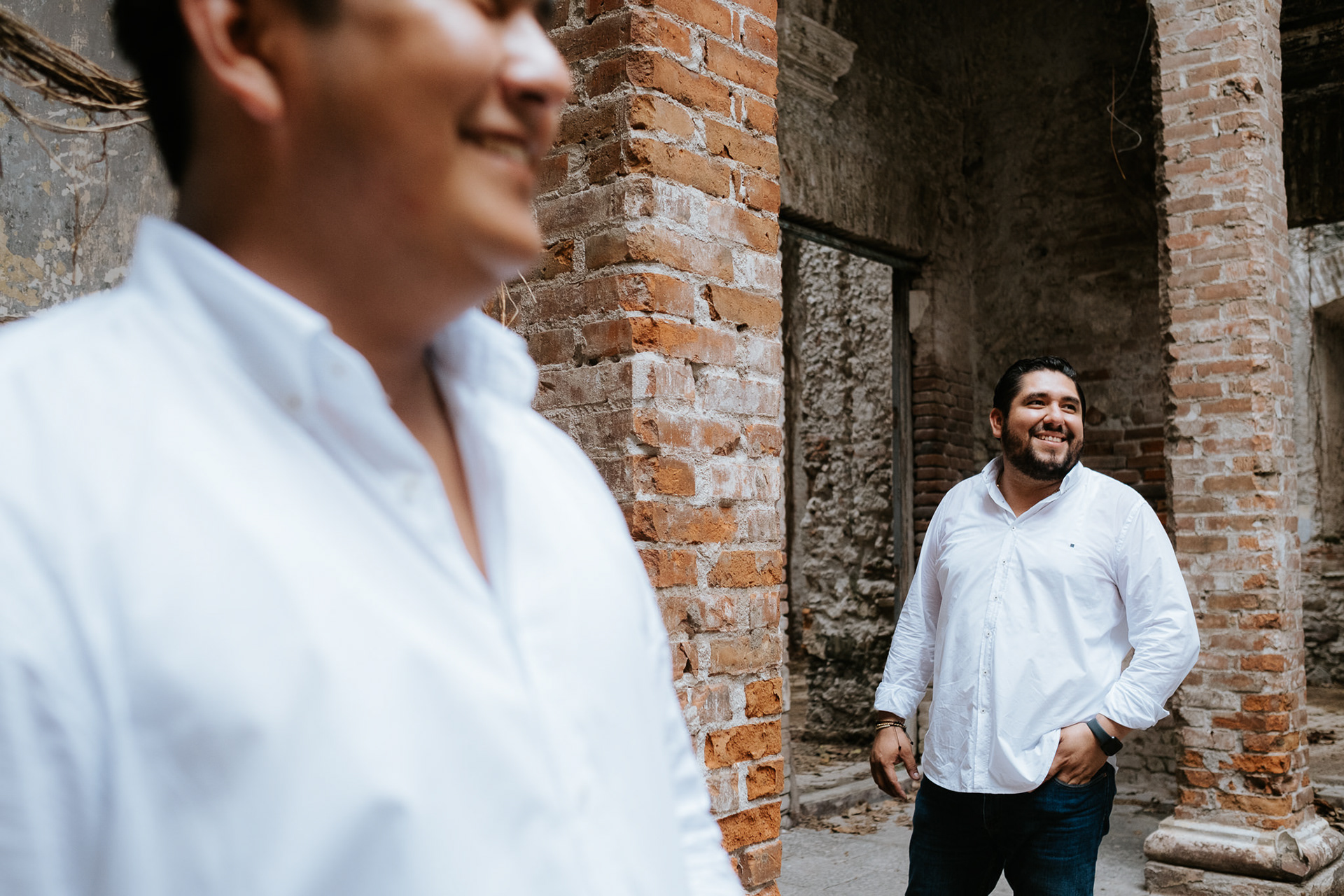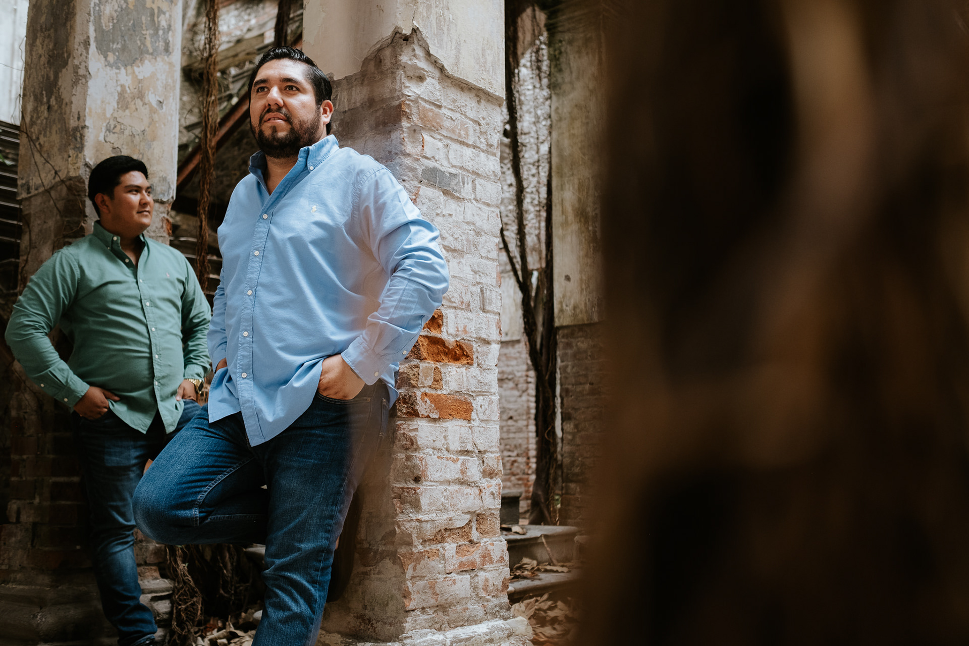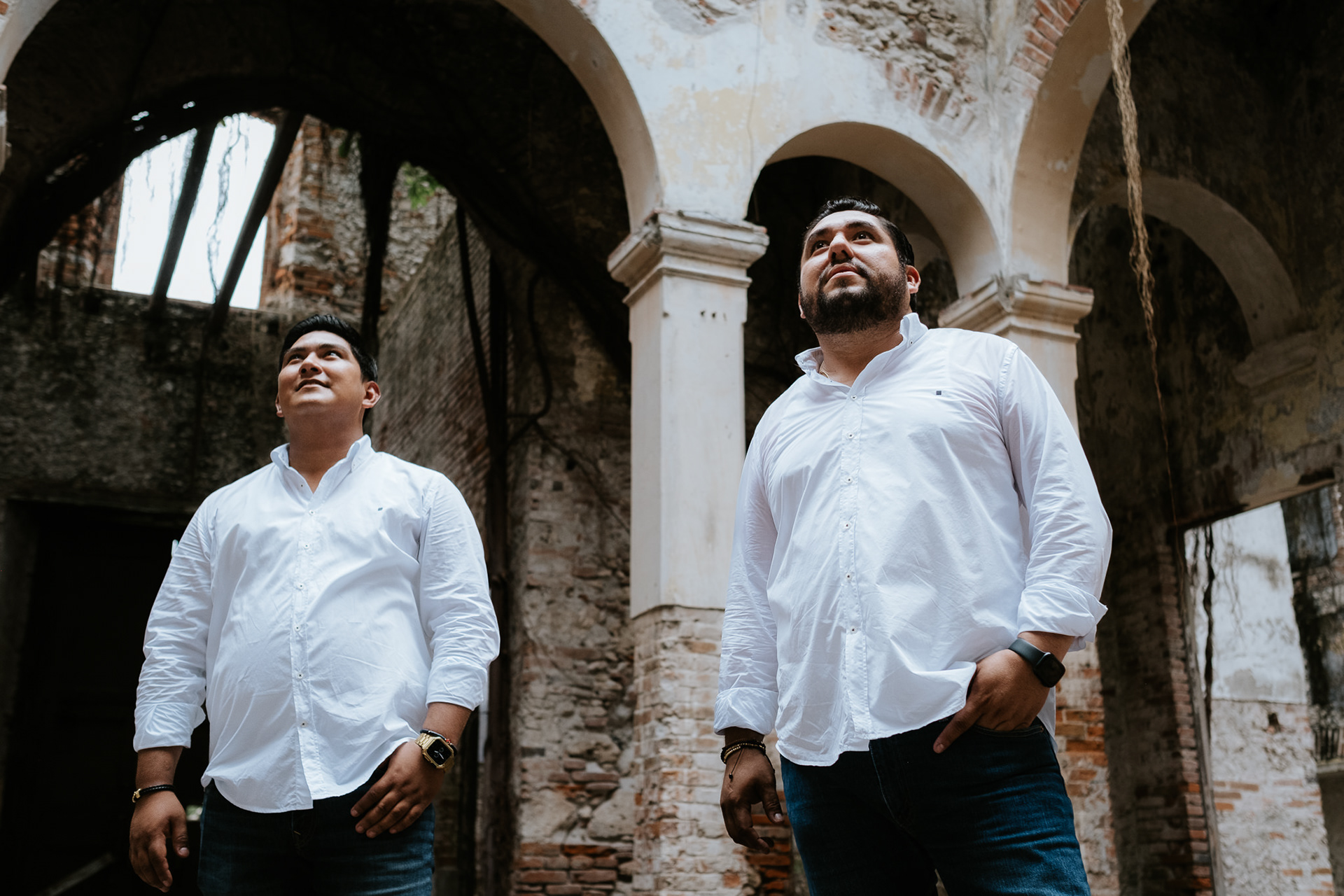 La sesión fue íntima, nomás nos fuimos los 3 a Veracruz, a un lugar al que le tenían capricho y entramos como pudimos, ellos son de pocas fotos pero yo no, entonces ahí se hace un buen promedio y me conceden la fortuna de confiar en mis dinámicas.