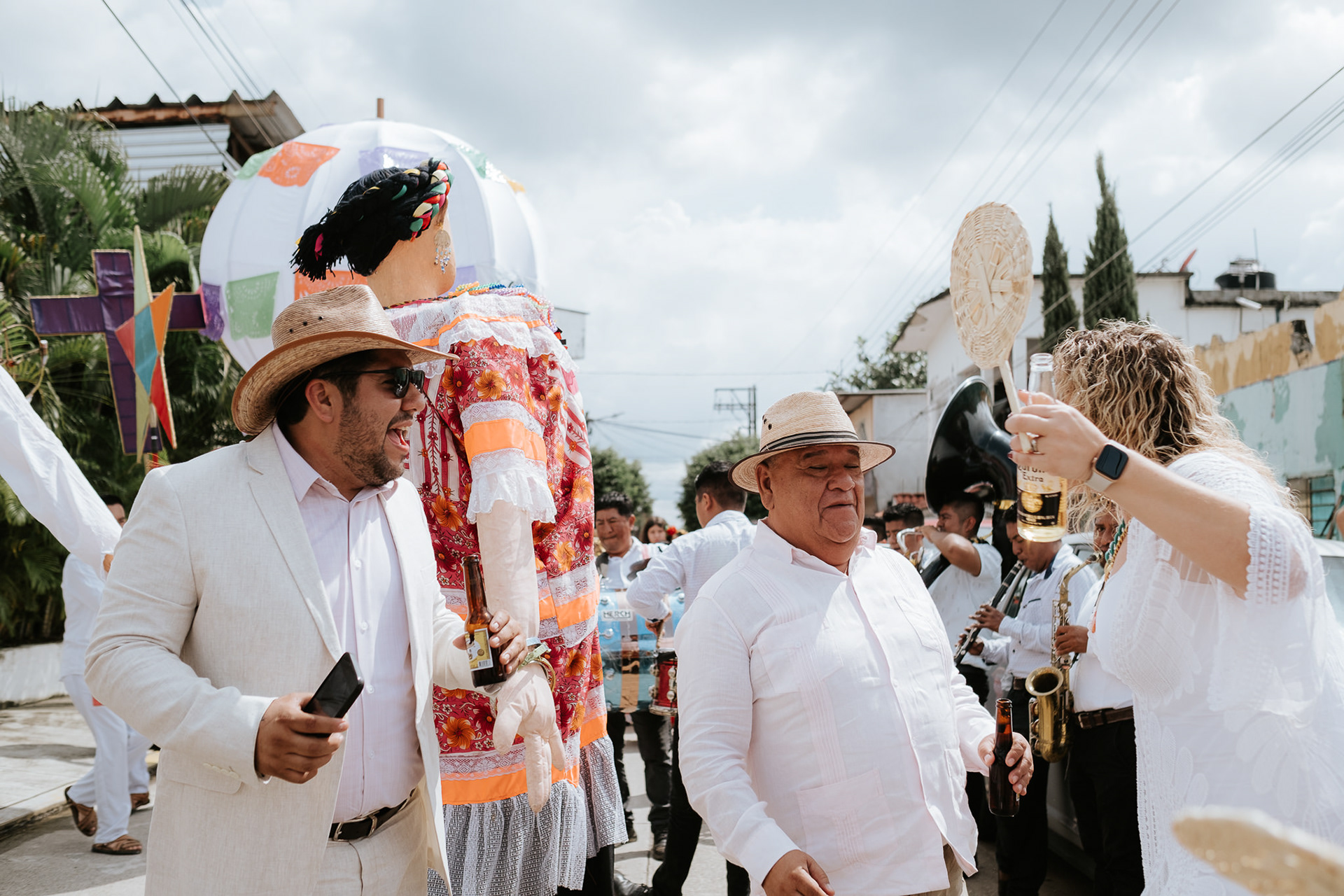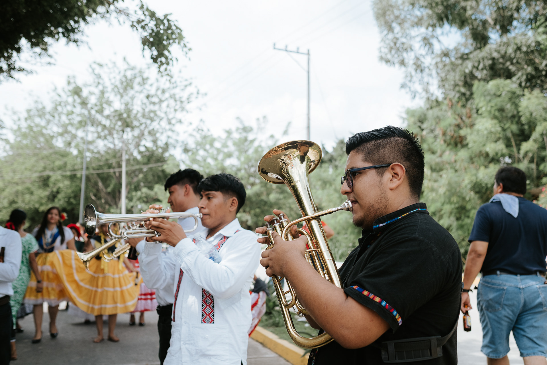 Para las fiestas me fui en modo documental, se programó muy poco de todo, lo importante siempre fue registrar de la mejor manera posible la mayor cantidad de detalles y gestos que hubiera en cada etapa. El cierre con calenda y ceremonia espiritual fue enorme, la energía incomparable